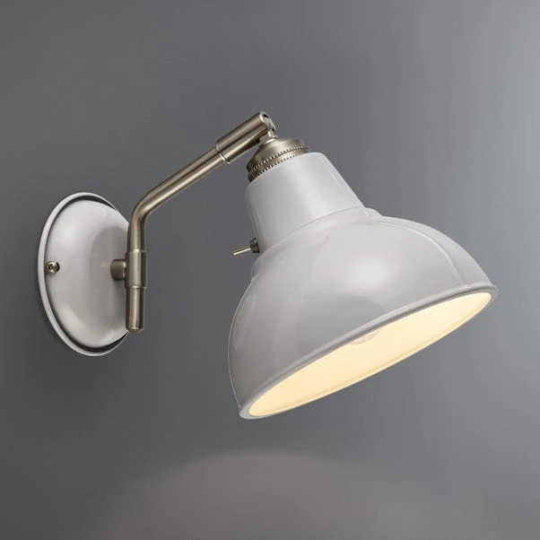 Stylishly designed with an adjustable head and a built-in toggle switch, this single wall light would make a great addition to any office or bedroom space. Available in a choice of colours, this stylish retro light features a dome shaped shade with a glossy painted finish, complemented with brushed chrome effect details.
