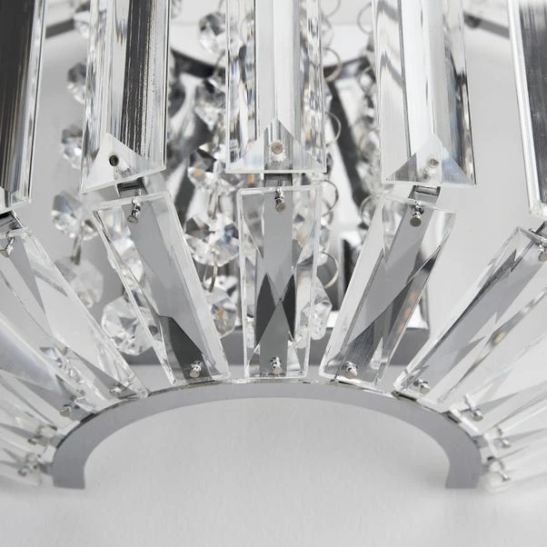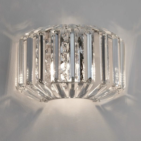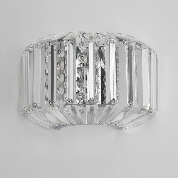 Add a luxurious touch to your home with our Chantilly Crystal Wall Light, made with chrome finish and a clear crystal glass shade. It’s compatible with a dimmer switch so you can set that perfect glow in the evening. What’s not to love?