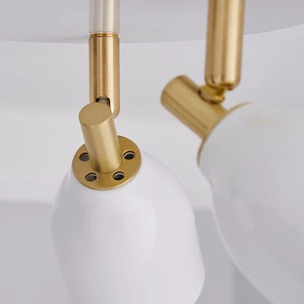 Stylishly crafted, this LED spotlight features three lights with adjustable and dimmable heads, offers a modern on-trend, white gloss finish with golden satin brushed effect.