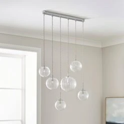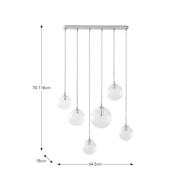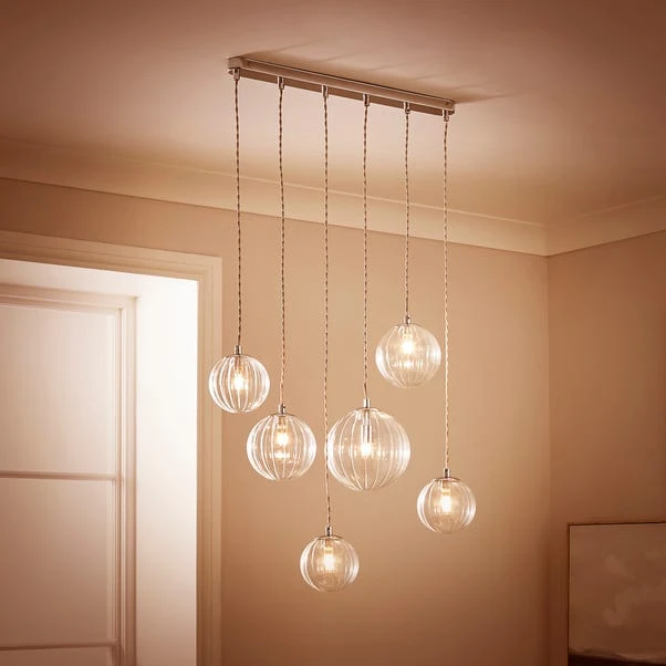 Bring a touch of opulence to your living space with this cluster ceiling light. It features ribbed glass orbs hanging at varied heights from a smart metal fitting for a contemporary take on a timeless style.
