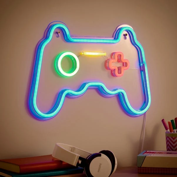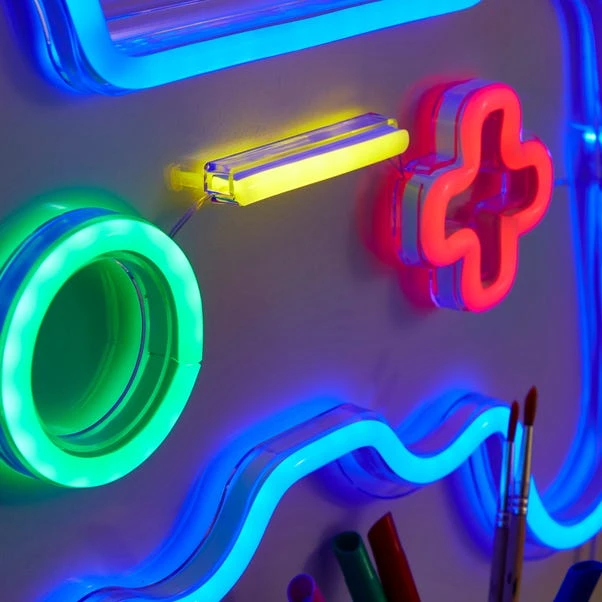 Brighten up your gaming room with this vibrant, multicoloured game controller neon wall light. Easy to attach to the wall with two pre-drilled holes and powered by an included USB cable, it adds a fun, playful touch to any gamerโs space.