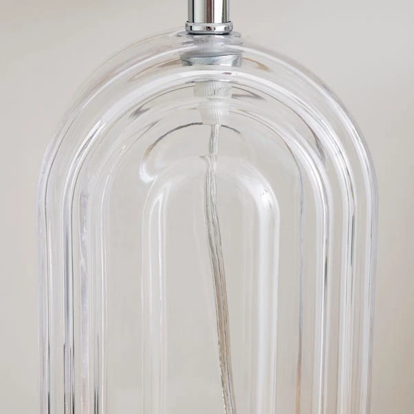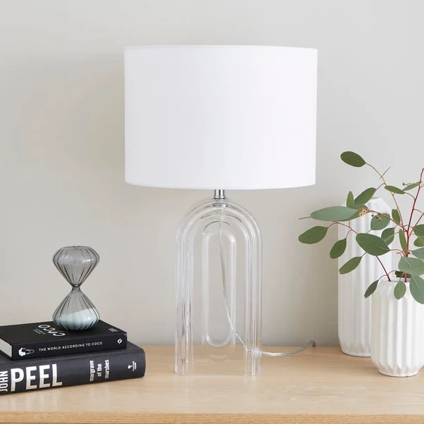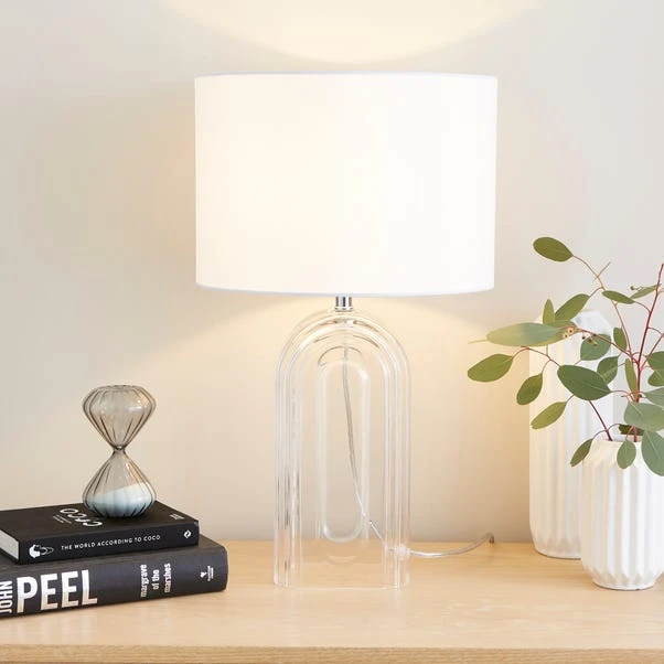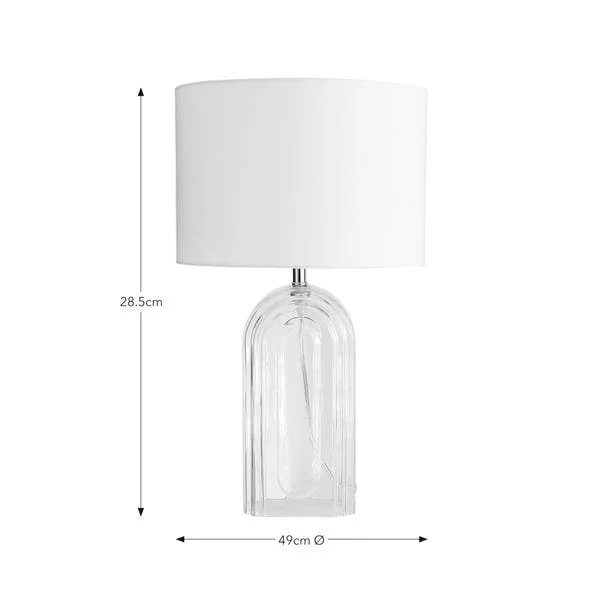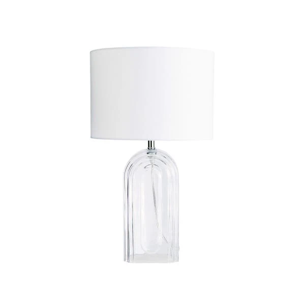 Capture the elegance of the 1920s with the Josie Arched Glass Table Lamp. Its arched glass design exudes a timeless charm, complemented by a round white shade. The in-line switch ensures easy operation, making it a perfect addition to any space.