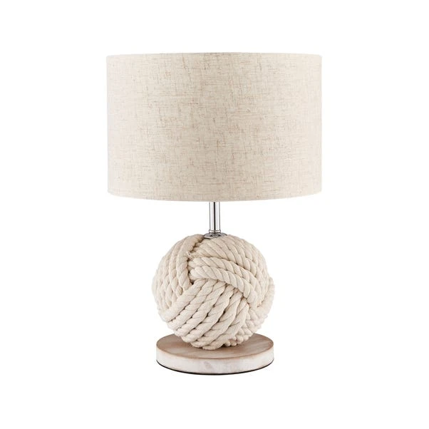 This Lina table lamp features a white washed rope knotted into a ball to create a unique lamp base. Supplied with a natural, faux linen fabric shade this lamp has a useful in-line switch and would be a wonderful addition to a range of interiors.