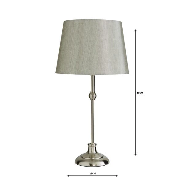 Add a touch of elegance to any room with the Metal Ball Table Lamp. Featuring a classic candlestick design adorned with stylish ball detailing, this lamp is paired with a luxurious faux silk shade. The handy in-line switch ensures effortless control, making it as practical as it is beautiful. Choose from multiple colourways to perfectly match your décor.