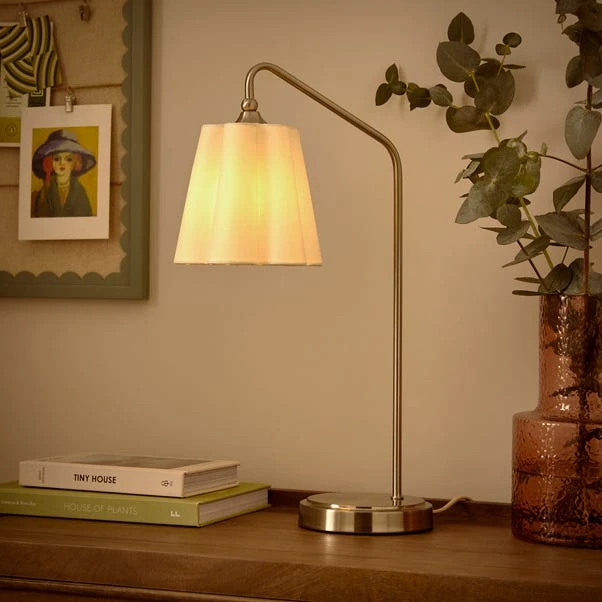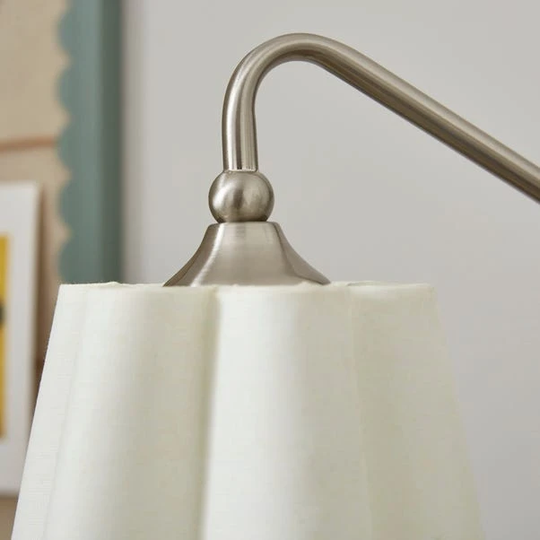 A stylish and sophisticated table lamp with a petal-shaped shade, it boasts a beautiful satin nickel metal frame and is ideal for adding a touch of elegance to your decor.